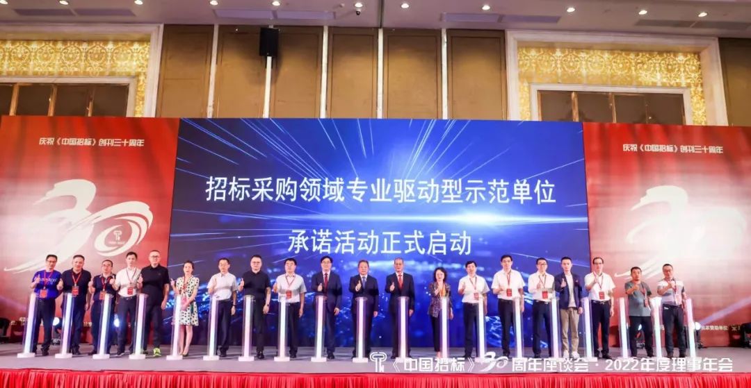 《中国招标》30周年座谈会暨2022年度理事年会于8月20日在浙江宁波成功召开。中国机电设备招标中心(工业和信息化部政府采购中心)主任刘爱民出席会议并致辞,中国机电设备招标中心(工业和信息化部政府采购中心)副主任张远刚主持会议。《中国招标》杂志社社长张松伟在会上作了2021-2022年度理事会工作报告。部分理事单位代表分享了代理机构如何高质量发展的创新做法。作为《中国招标》的常务理事单位,公司总经理吴财荣应邀参会,并参加主办方举办的招标采购领域专业驱动型示范单位倡议和承诺活动启动仪式;公司被《中国招标》授予“招标采购领域专业驱动型示范单位”荣誉称号。
