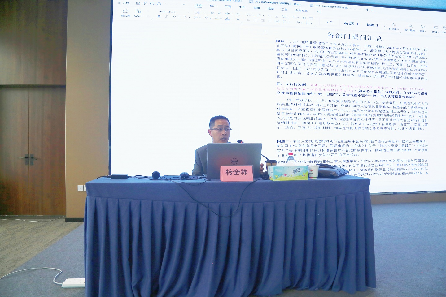 培训会上,杨金祥律师就目前政府采购活动中常见的问题进行了逐条分析和讲解,并结合质疑投诉较为集中的事项进行剖析,提出了改进建议。