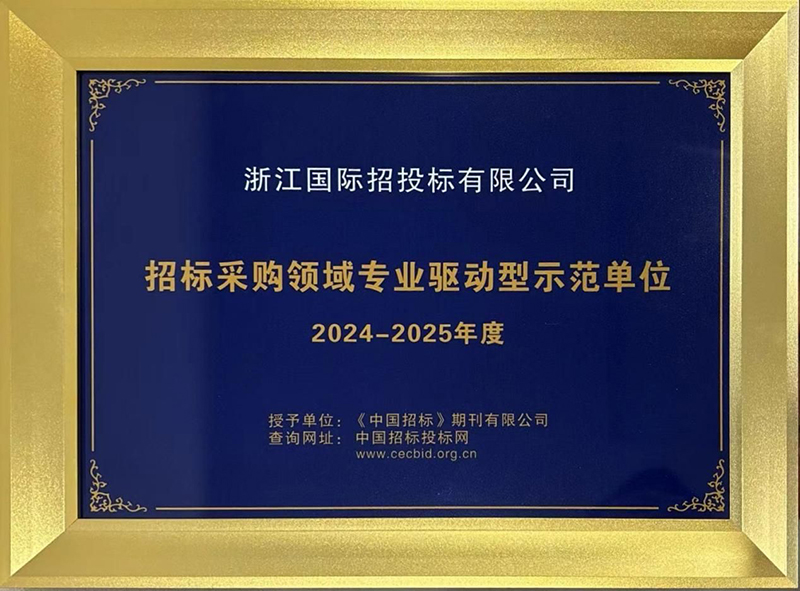 浙江国际招投标公司作为“招标采购领域专业驱动型示范单位”将沿着专业化发展道路继续努力,为招标采购行业高质量发展做出应有的贡献。