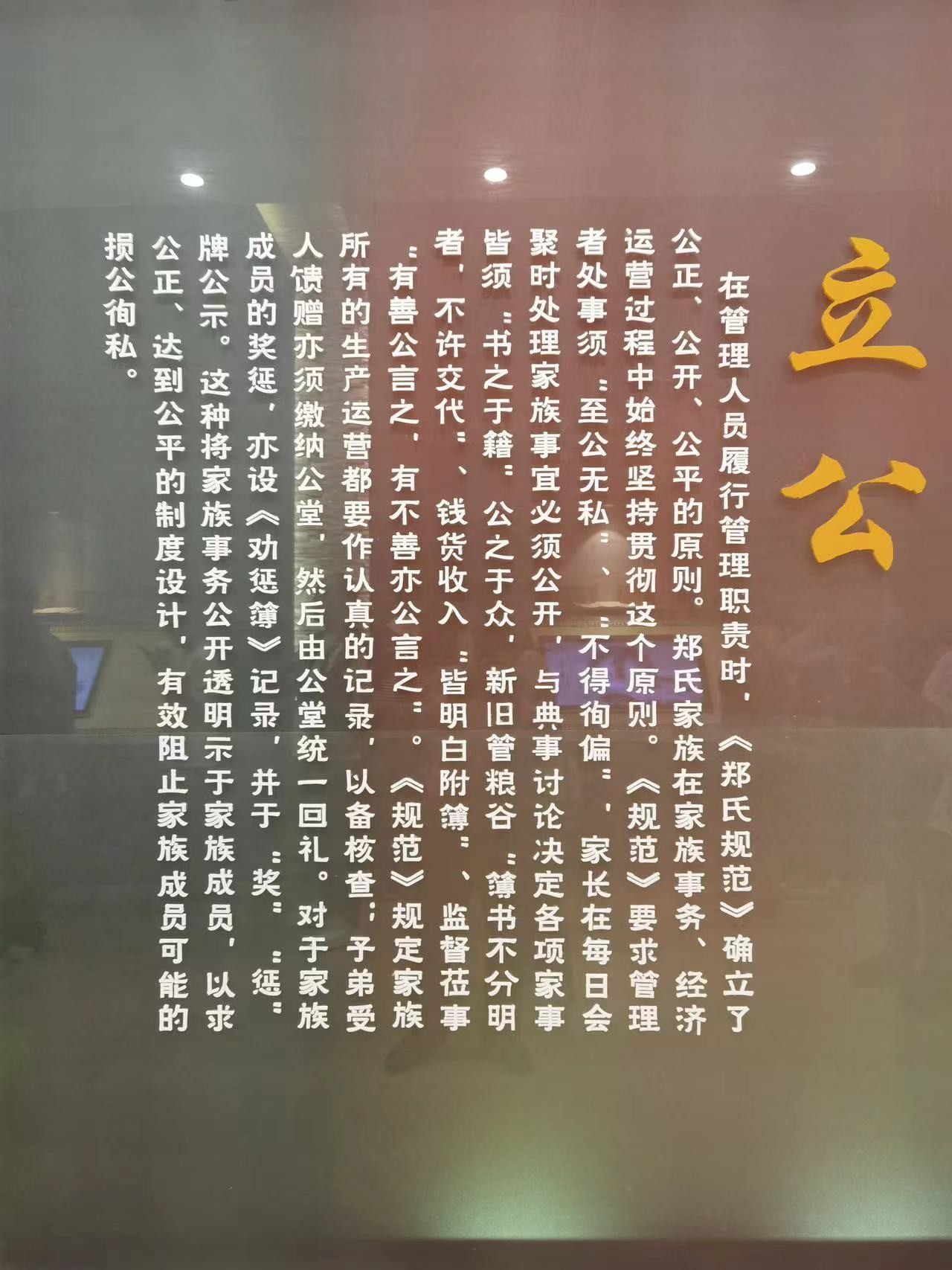 大家首先来到廉政展馆,工作人员结合展板、雕塑内容给全体党员详细介绍了郑氏家族几百年来孝义治家、以廉为士的故事、趣事。千百年来郑氏家族一直倡导廉洁为政、孝义持家和“以德正心、以礼修身、以法齐家、以义济世”的儒学伦理,是古代廉政文化家庭之典范。其中一块“立公”展板反映了郑氏家族在家族事务、经济运营过程中,《郑氏规范》确立了“公正、公开、公平”的管理原则,正与我们从事的招投标工作“三公”原则不谋而合。总之,参观了廉政展馆,给全体党员在廉洁从业、孝义持家等各方面以深刻的启迪。